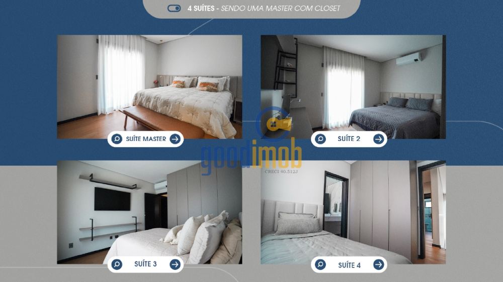4 suítes, sendo 1 suíte máster com amplo closet