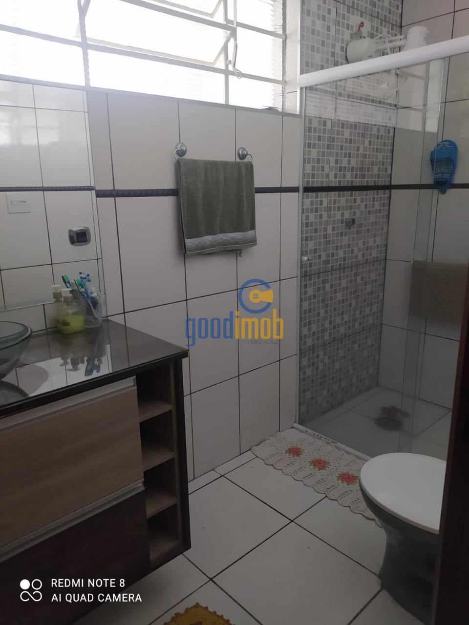 - Banheiro com gabinete, espelho e box de vidro temperado