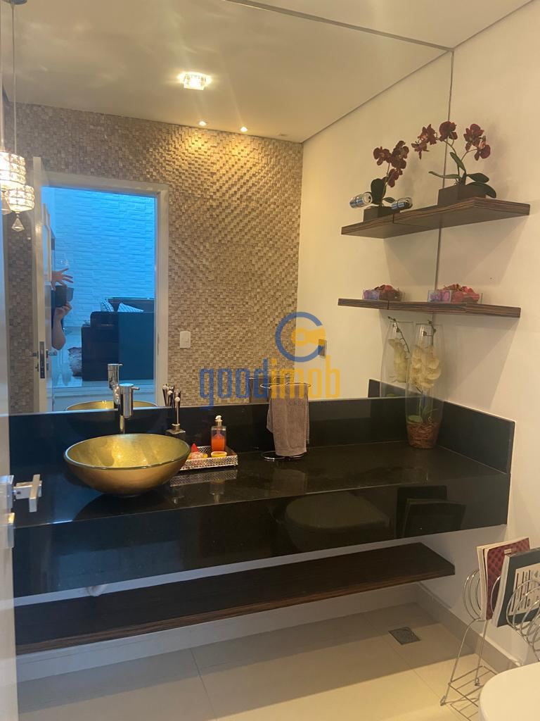 - Banheiro adjacente à área gourmet e outro próximo à piscina.