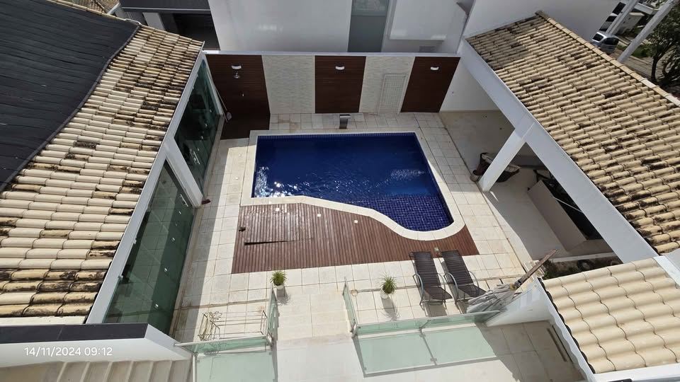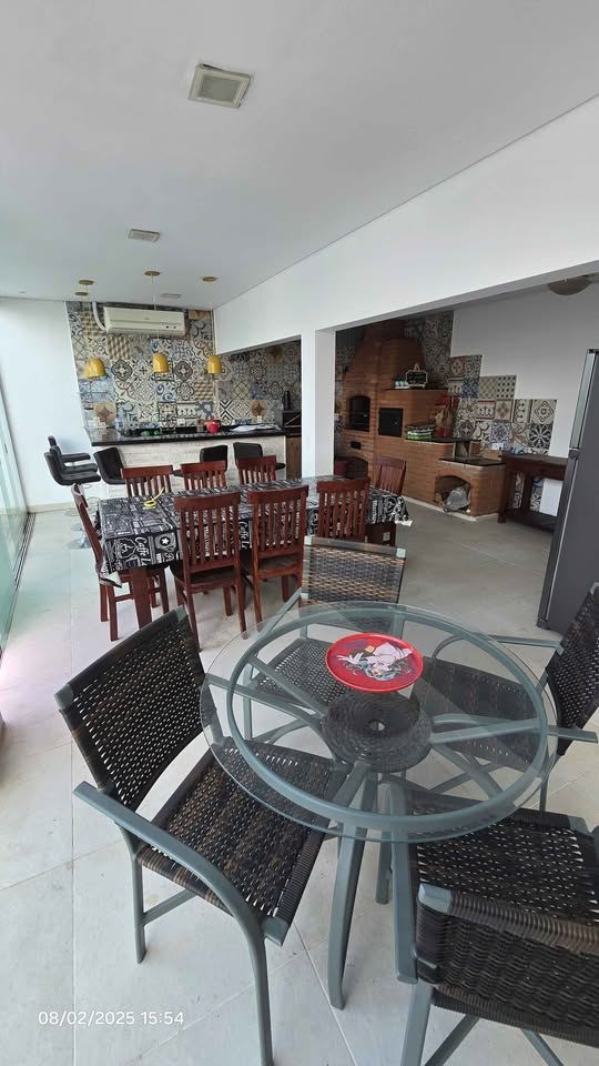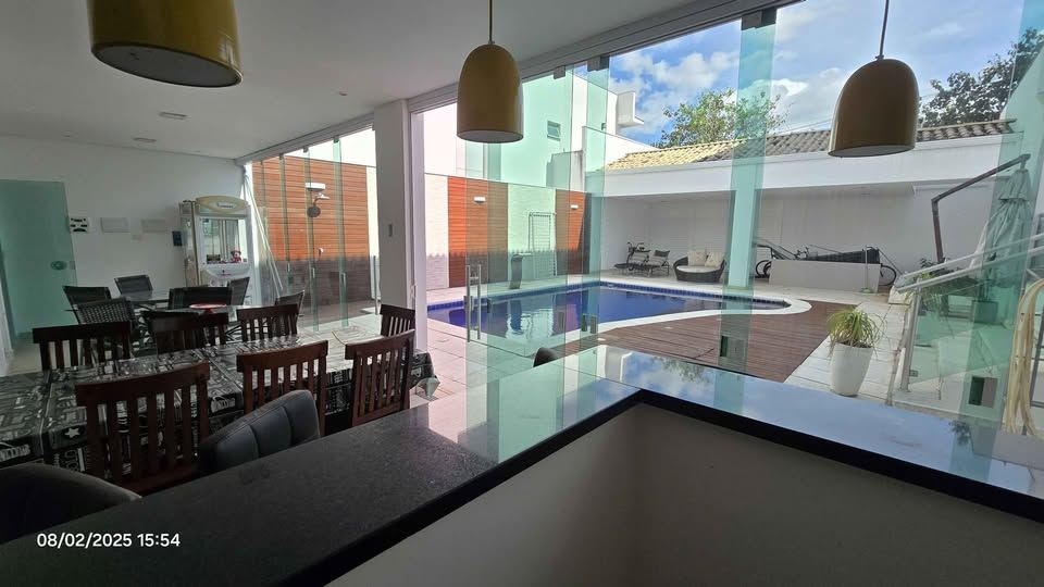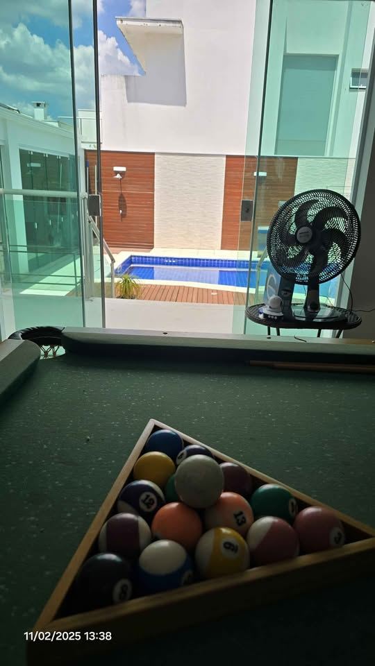 5 salas amplas: estar, jantar, TV, escritório e salão de festas/jogos com ar-condicionado