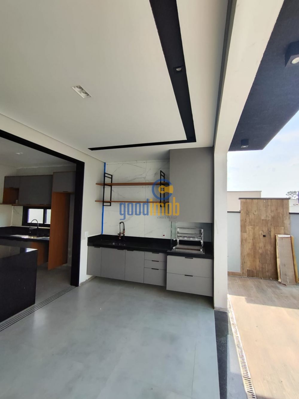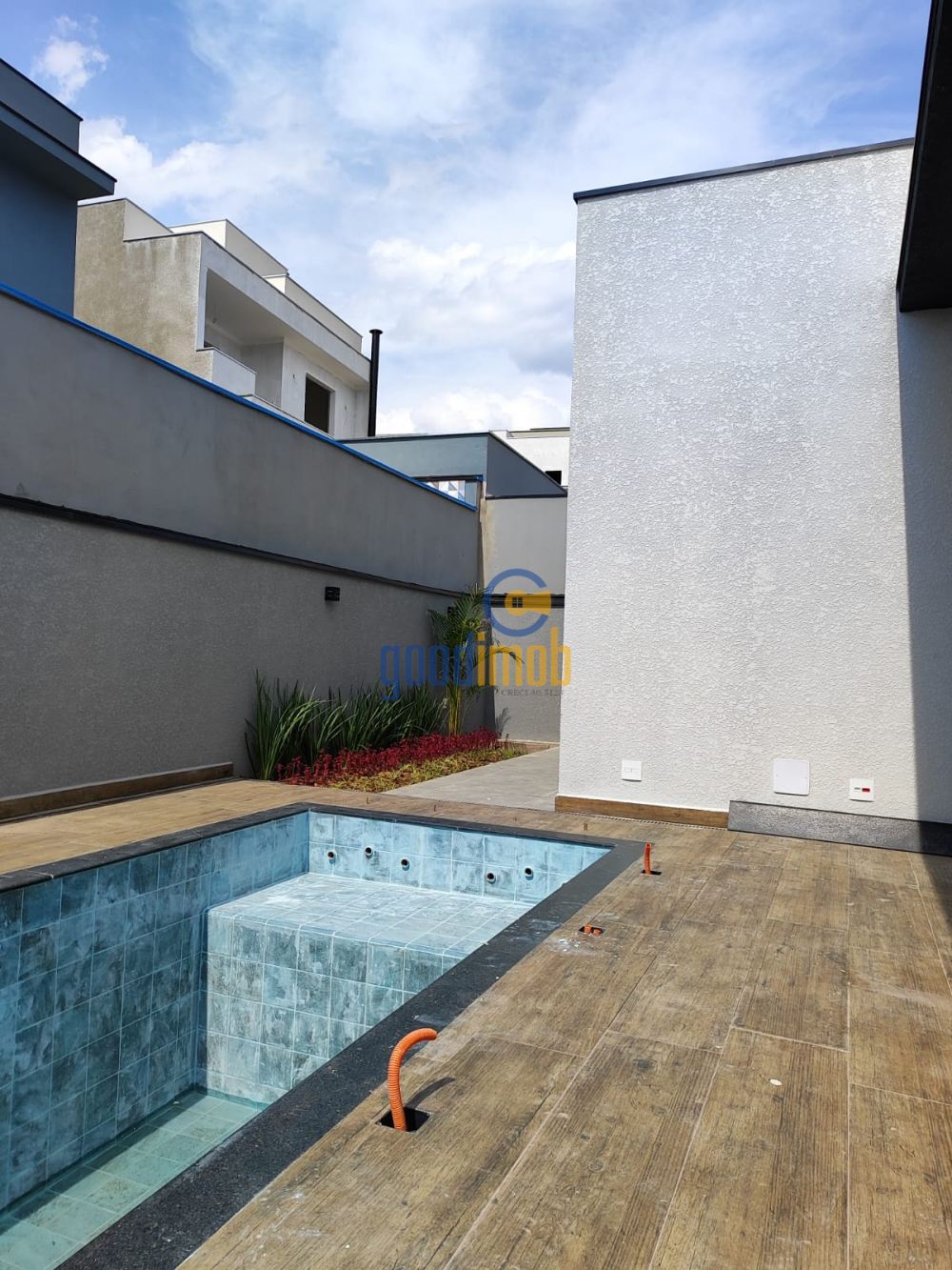 - Fachada contemporânea que contempla em seus detalhes os seguintes acabamentos: textura projetada, porta de entrada com brise em alumínio imitando madeira, fita led, fechadura eletrônica, garagem coberta para 2 carros, degraus com acabamento com pedra fulget e fita de led, rampa de acesso em fulget, sala pé direito duplo com painel ripado, cozinha e gourmet com ilha de granito preto São Gabriel e móveis planejados, churrasqueira gourmet, a casa possui 3 suítes sendo uma suíte master com closet, piso vinílico Injoy Papoula, banheiros modernos todo revestido em porcelanato, nichos com iluminação em led, cubas esculpidas em granito preto São Gabriel, bacia sanitária monobloco, escritório, lavanderia; na área externa os corredores possuem piso em porcelanato antiderrapante e paisagismo completo, quintal amplo no fundo, piscina com led, prainha e hidromassagem, acabamento em revestimento cerâmico e bordas no preto são Gabriel escovado