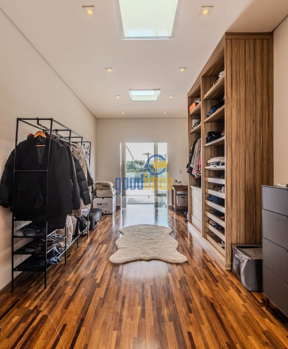 No piso superior, são 3 suítes amplas, incluindo a suíte master com duas varandas, closet generoso e sala de banho com duchas massageadoras.
