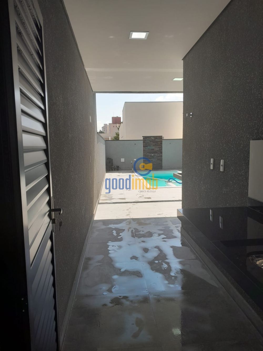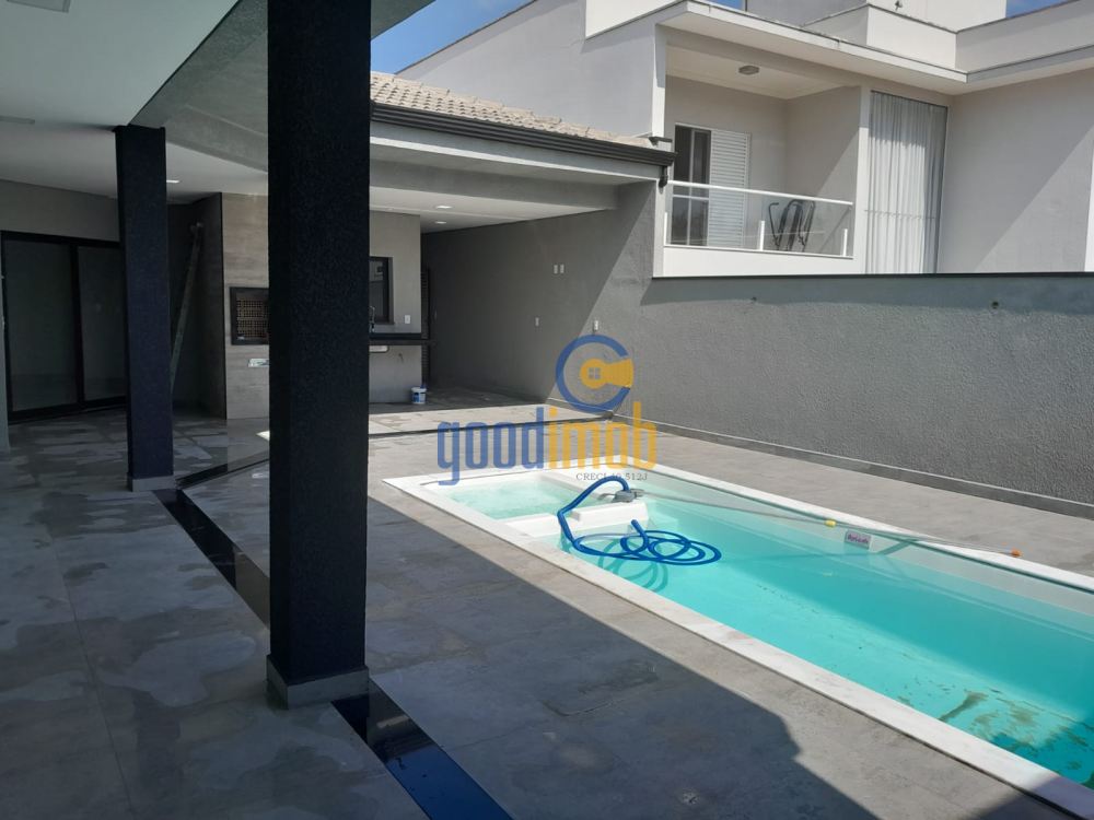 Garagem para 4 carros, sala ampla, cozinha, lavabo, área de serviço, área gourmet, 2 suítes, escritório e piscina.