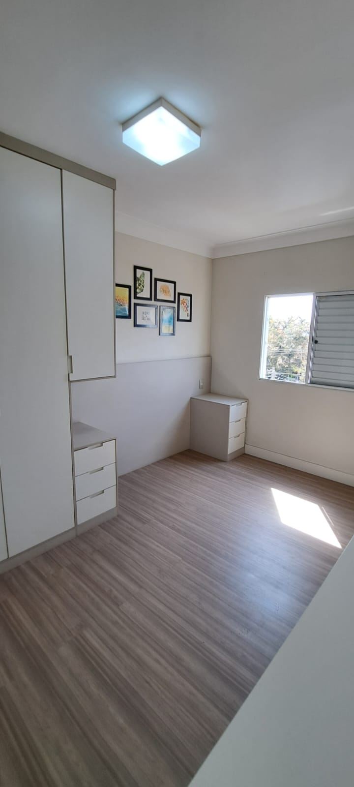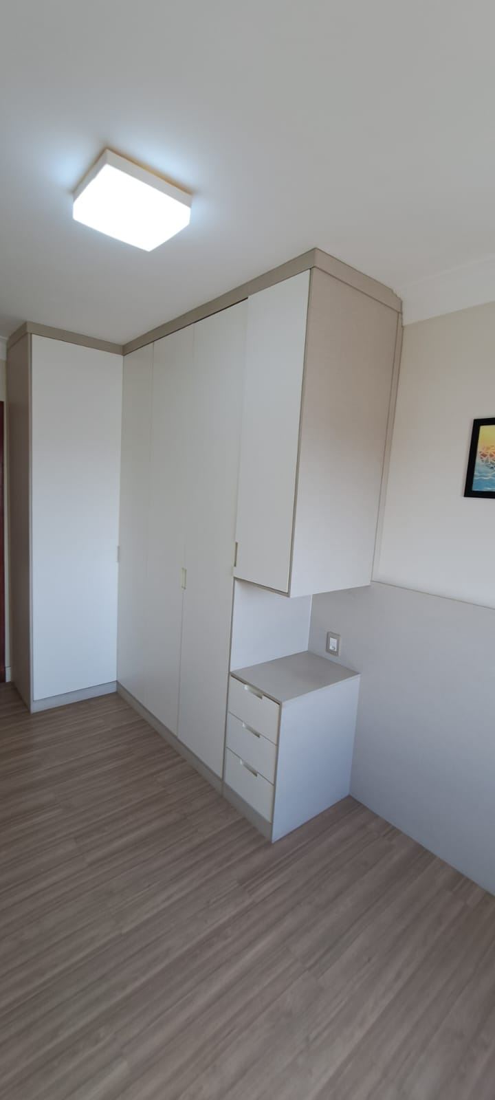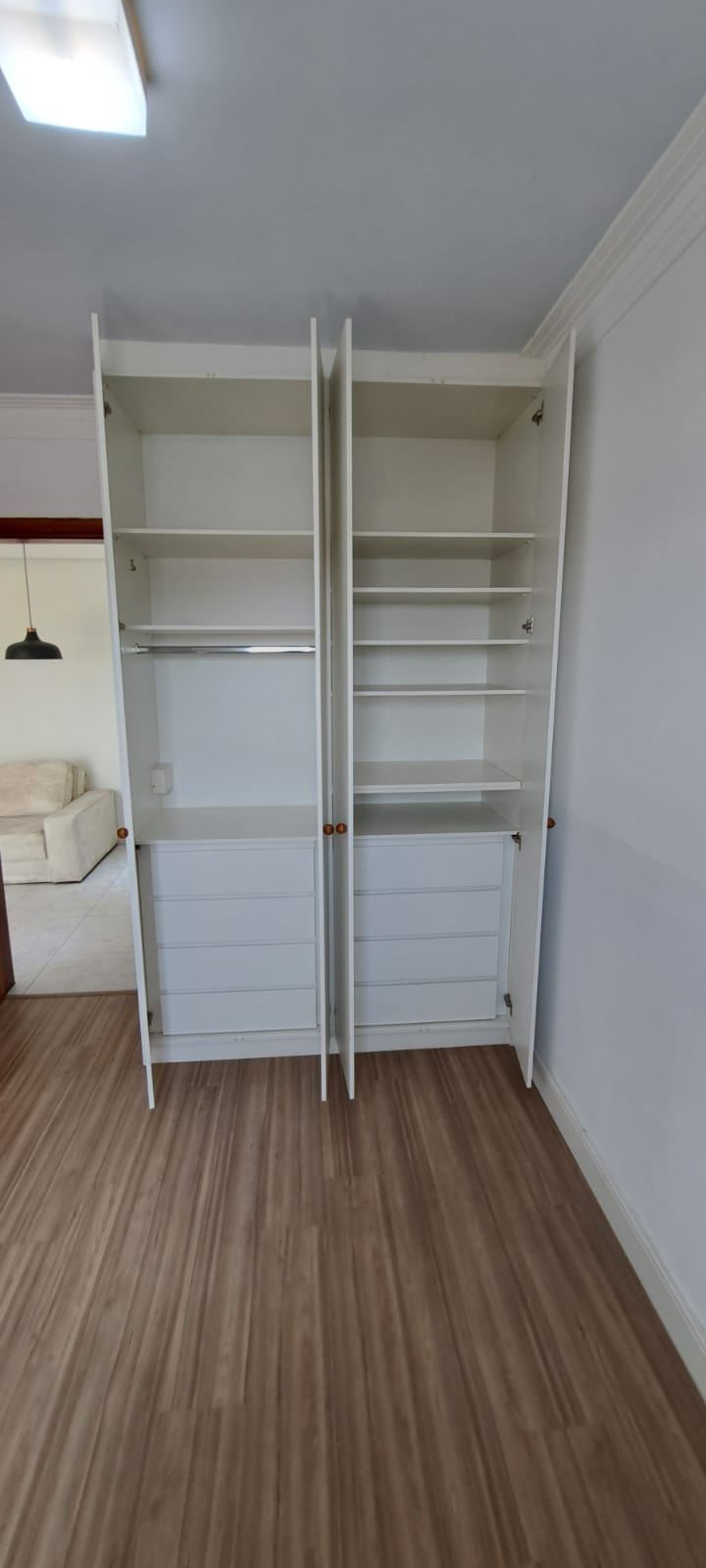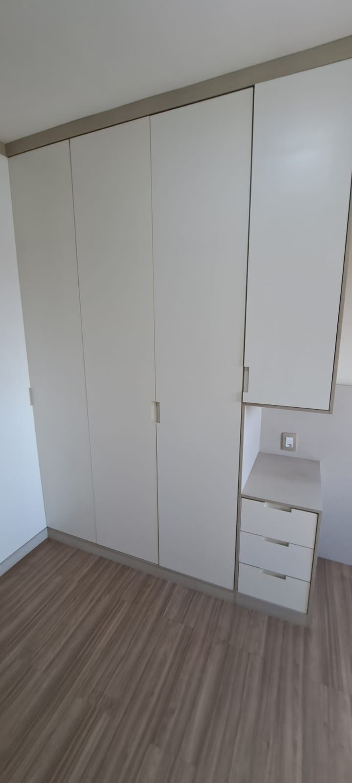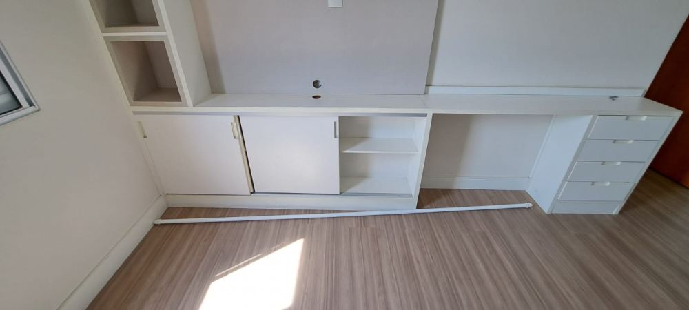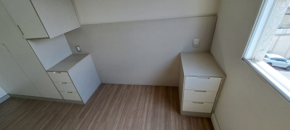 Dormitórios arejados com piso de madeira e modulados
