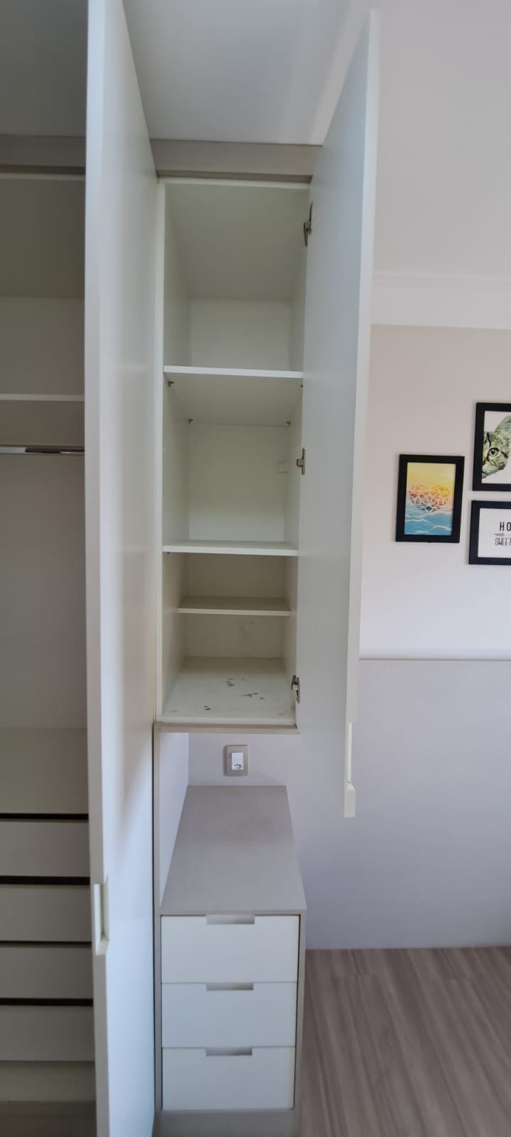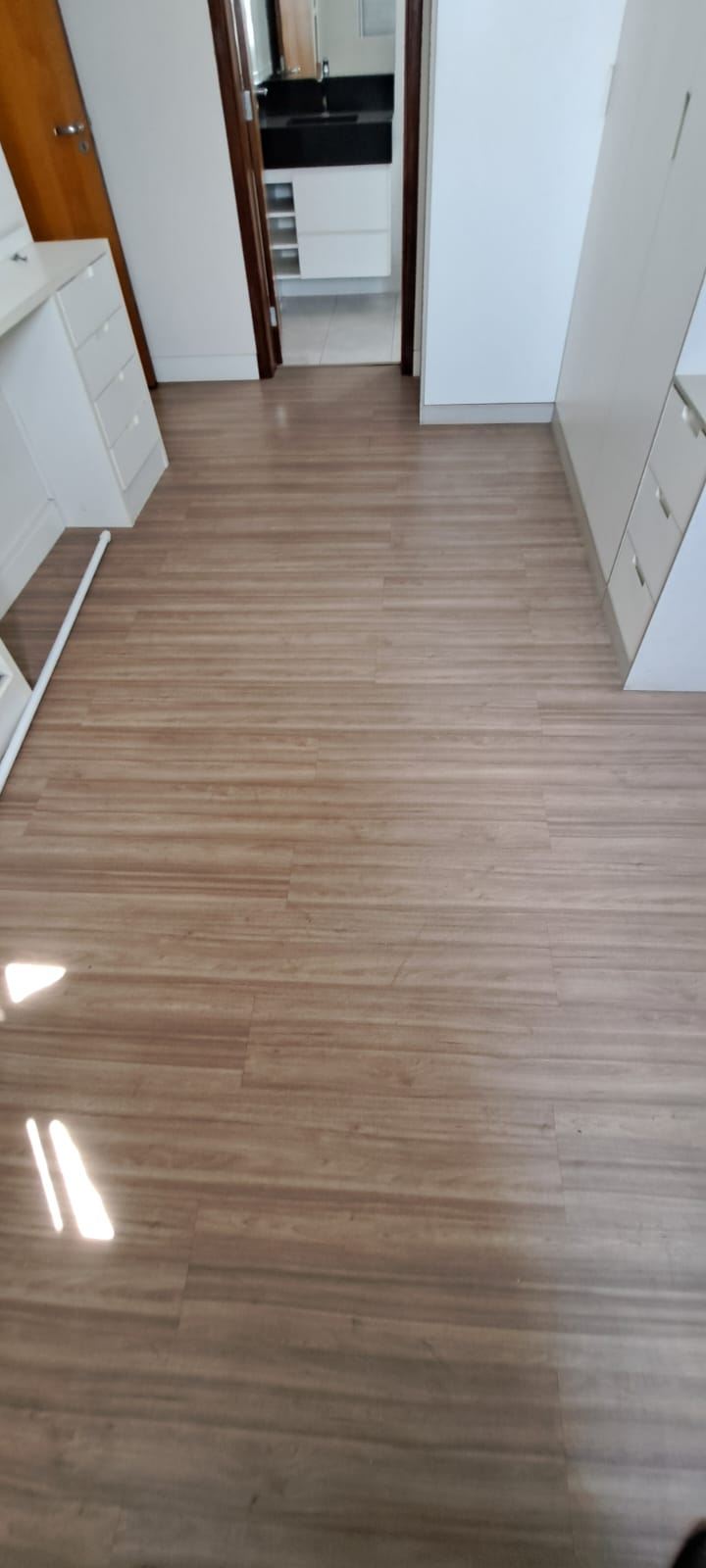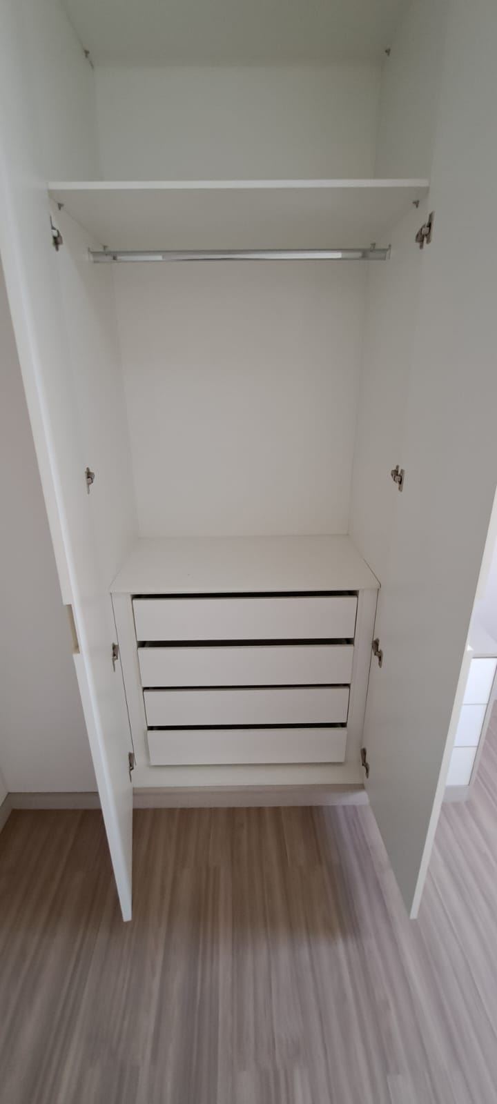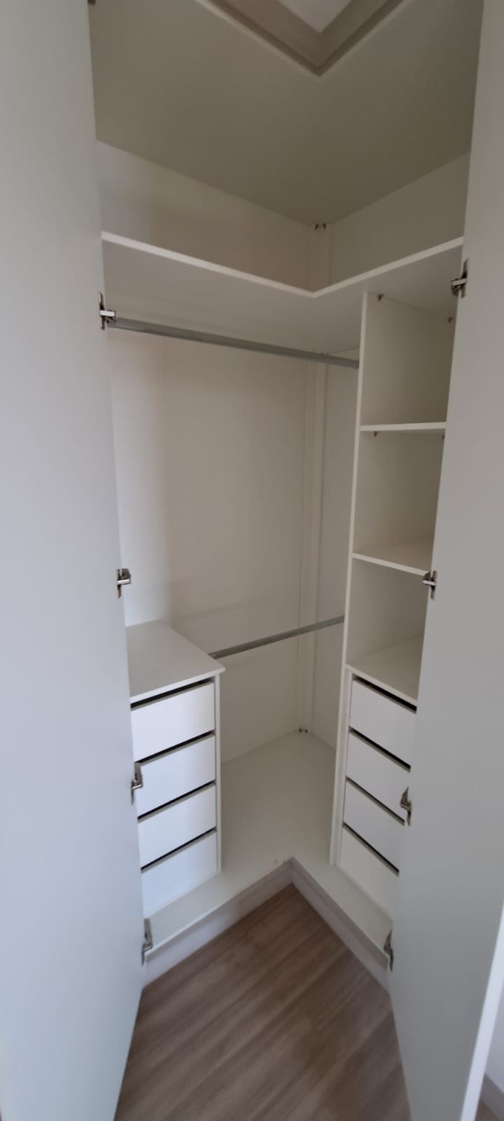 Dormitórios arejados com piso de madeira e modulados