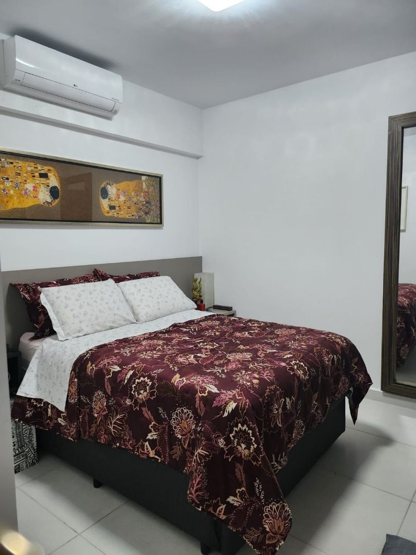 Entregue com sofá reclinável, mesa de jantar com banco baú, fogão novo com 2 fornos, micro-ondas novo, geladeira nova, bebedouro novo, máquina de lavar roupas e secar nova.