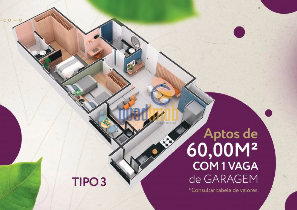 Os apartamentos do Residencial JABOH são projetados para proporcionar o máximo de conforto e praticidade: