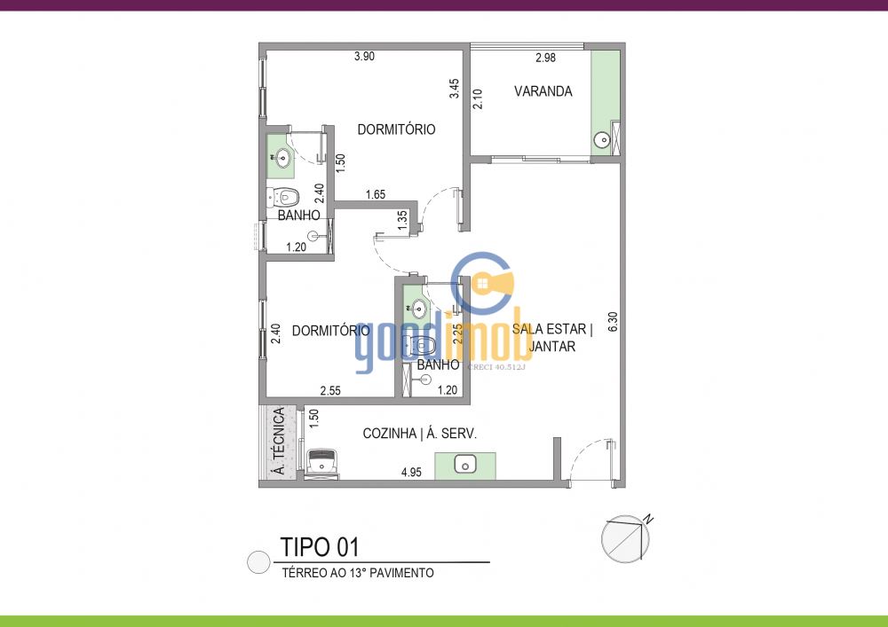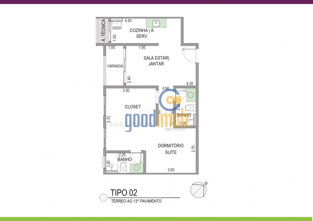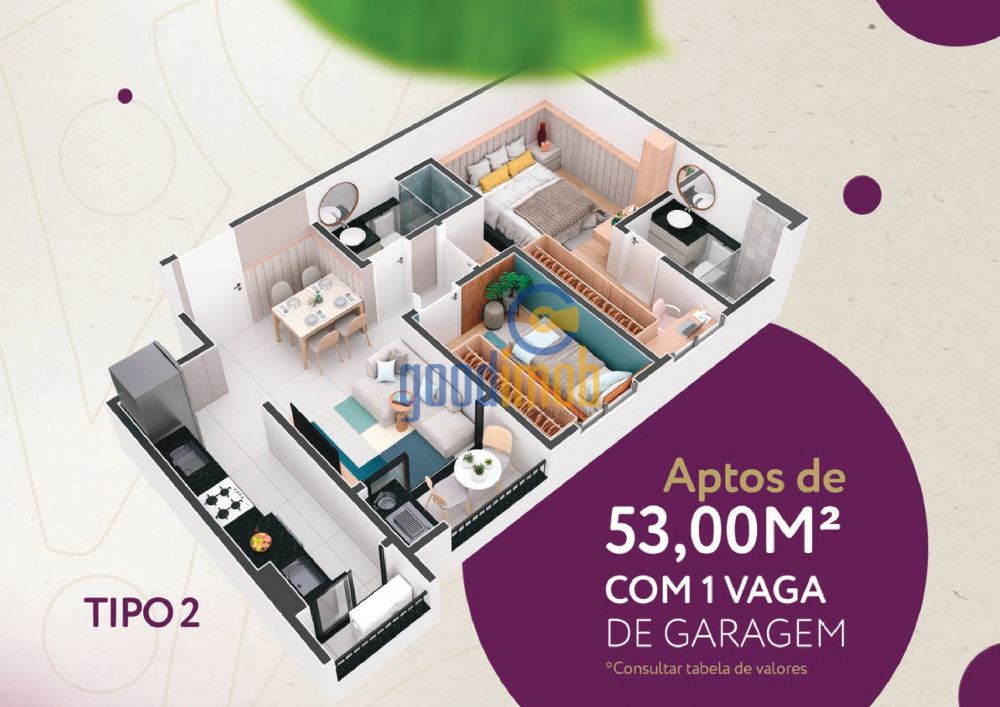 - 2 Dormitórios (incluindo 1 Suíte)