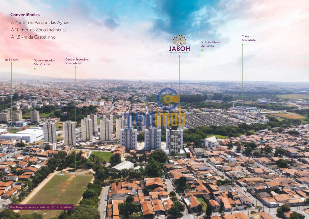 Localizado na Vila Gabriel, o Residencial JABOH oferece uma localização privilegiada a apenas 4 minutos do Parque das Águas. Este parque conta com ciclovias, anfiteatro de arena, playground, lago e uma rica fauna composta por mais de 30 espécies. Além disso, o condomínio está em frente ao centro esportivo e próximo a supermercados, colégios, posto de saúde, diversas lojas, bancos, posto de gasolina e comércios variados.