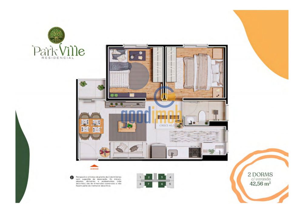 - Área Total: 42,56m²