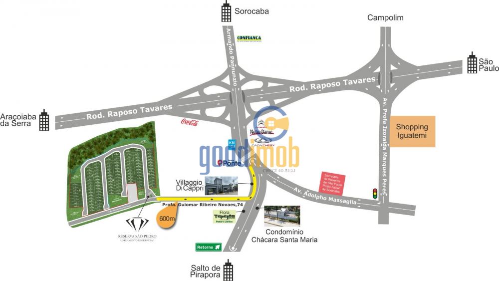 - Acesso pela Rodovia João Leme dos Santos e Rua Professora Guiomar Ribeiro Novaes