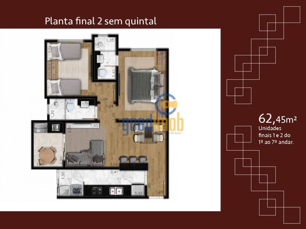 - 62,45m² de Área Privativa
