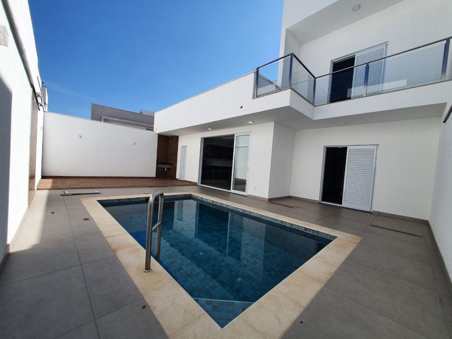 São 4 suítes, sendo 3 delas no piso debaixo, como se fosse uma casa térrea. Piscina aquecida e acabamento de primeira qualidade.