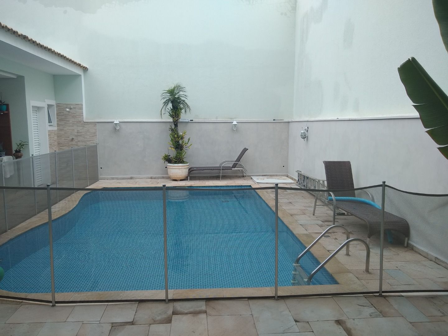 * Área de churrasco com churrasqueira, bancada de mármore, mesa de madeira com 6 lugares, piscina grande com motor por energia solar e tv 49 polegadas. Banheiro externo e um quarto para armazenamento pequeno de itens;