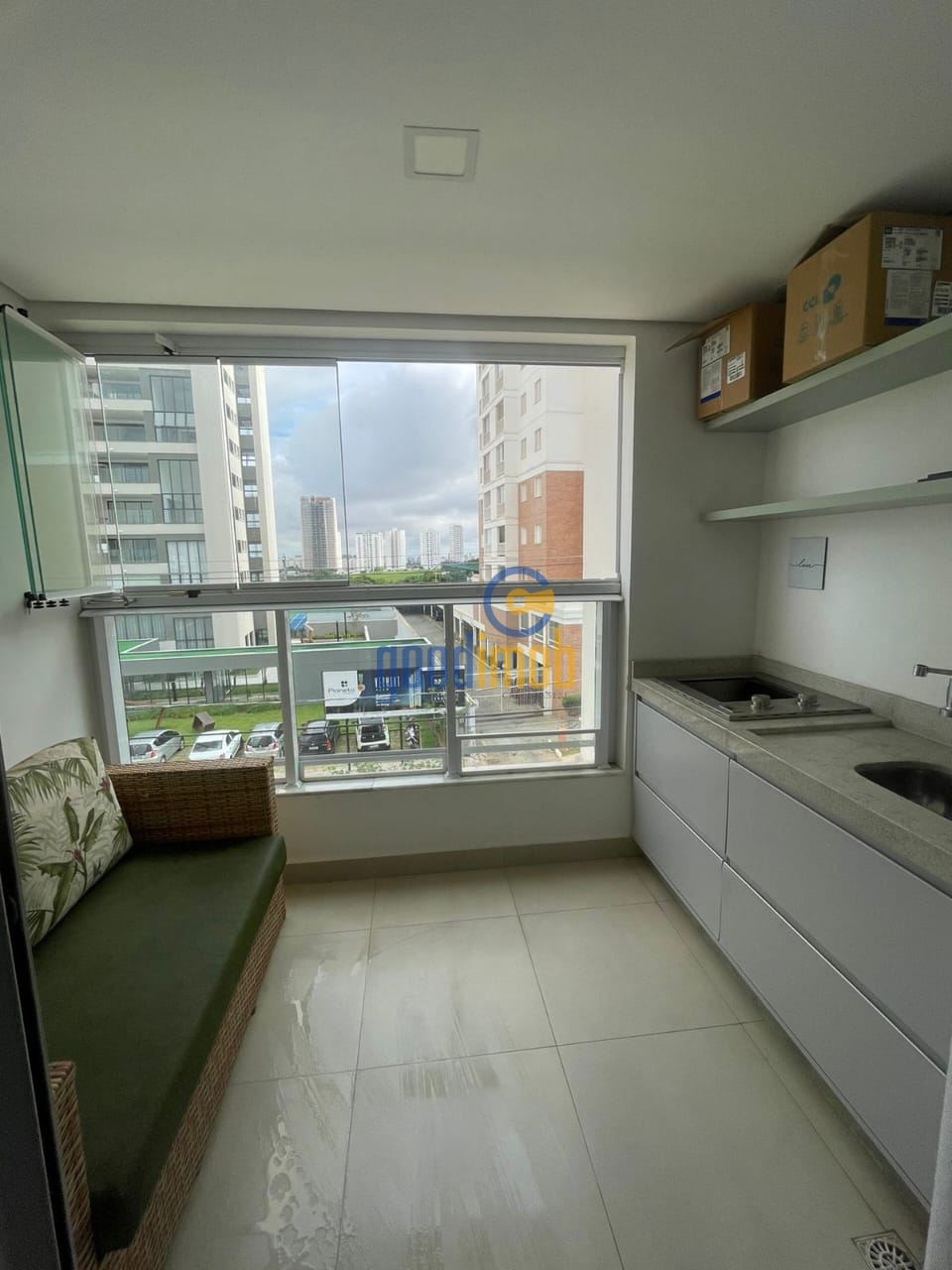 • Sacada gourmet com churrasqueira e fechada em vidros;